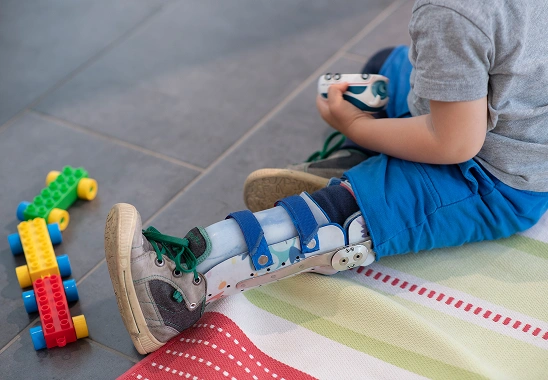 Vorsichtig befestigt Guido Simon von AGM Müller die Schiene an Marwins linkem Bein. Nur ca. 35 Zentimeter ist sie lang, sie reicht von den Zehen bis zur Leiste.